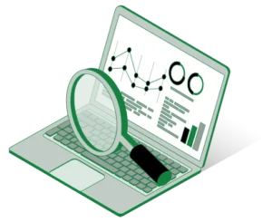 magnifying glass with computer chart